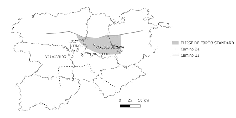 Hemos implementado el método para determinar la posición de Intercatia. Dentro de las diferentes localizaciones, Paredes de Nava ha resultado la más probable, siendo la única que se encuentra dentro del área de mayor probabilidad. Tradicionalmente, se ha considerado la opción de Villalpando, que es la menos probable, con una probabilidad menor del 30 %.